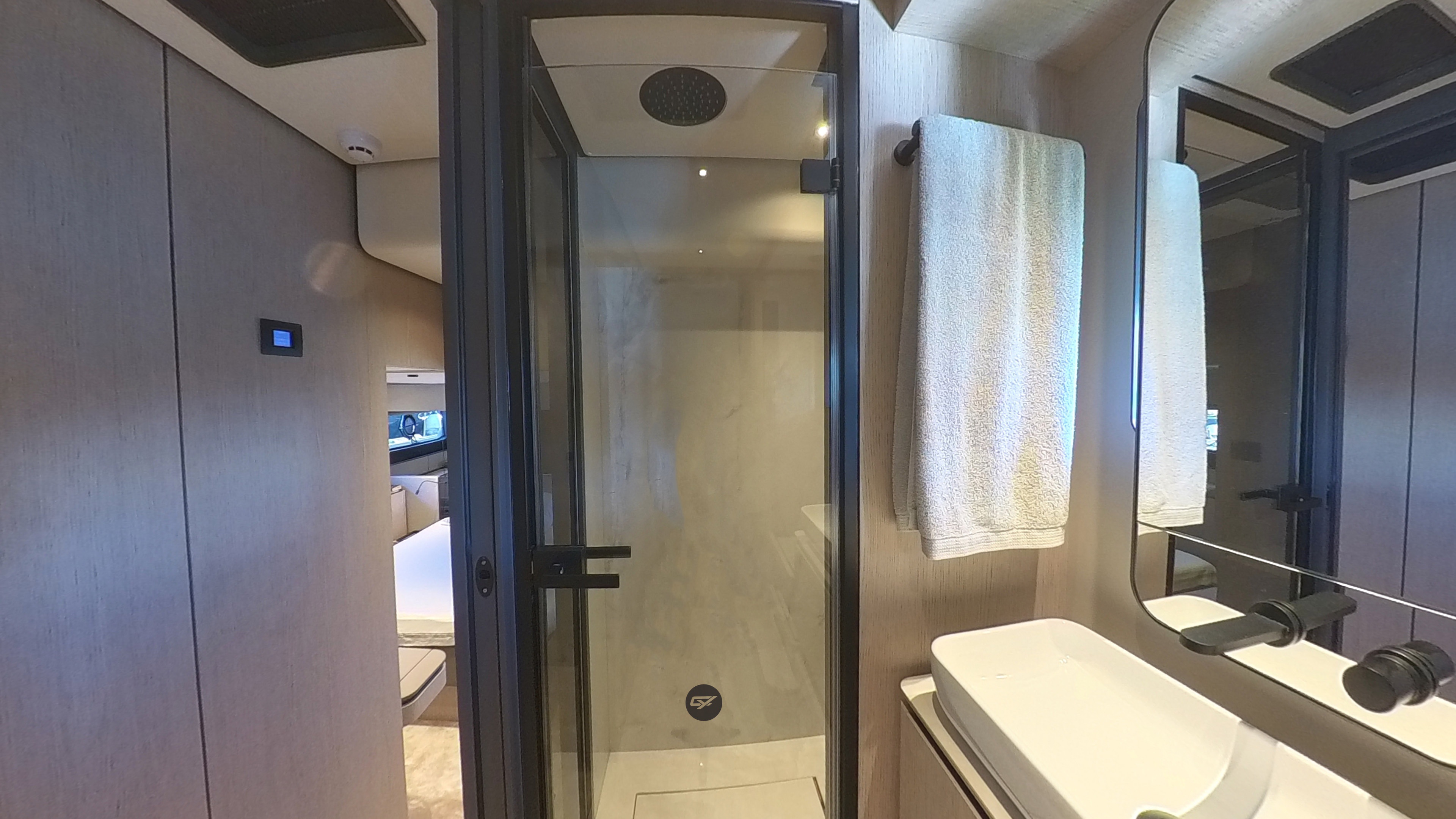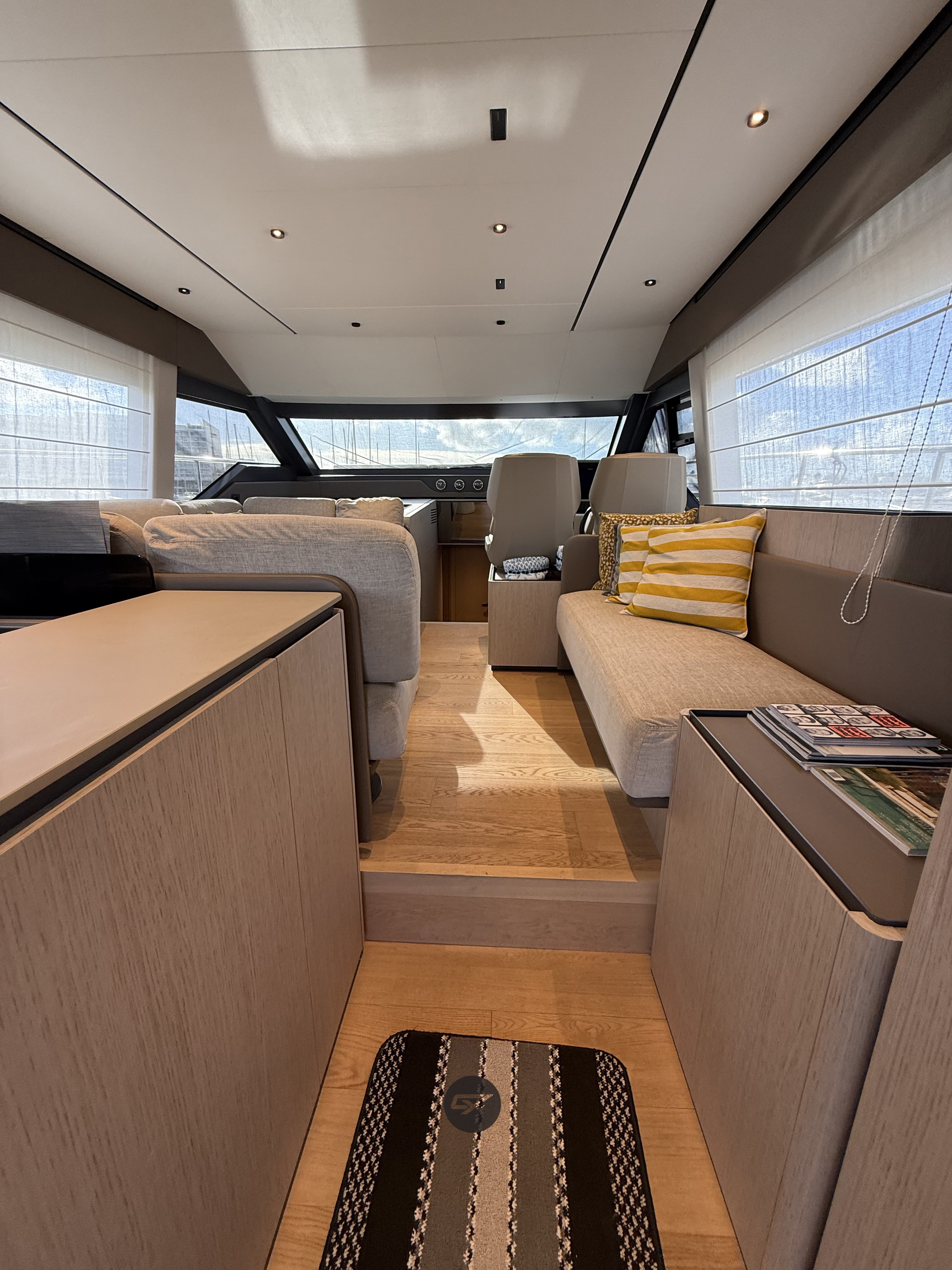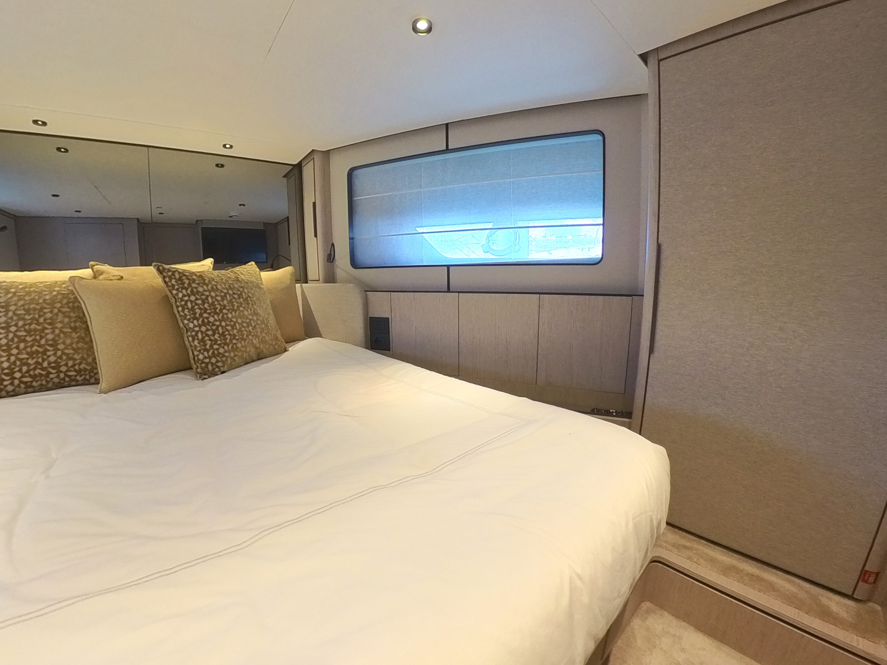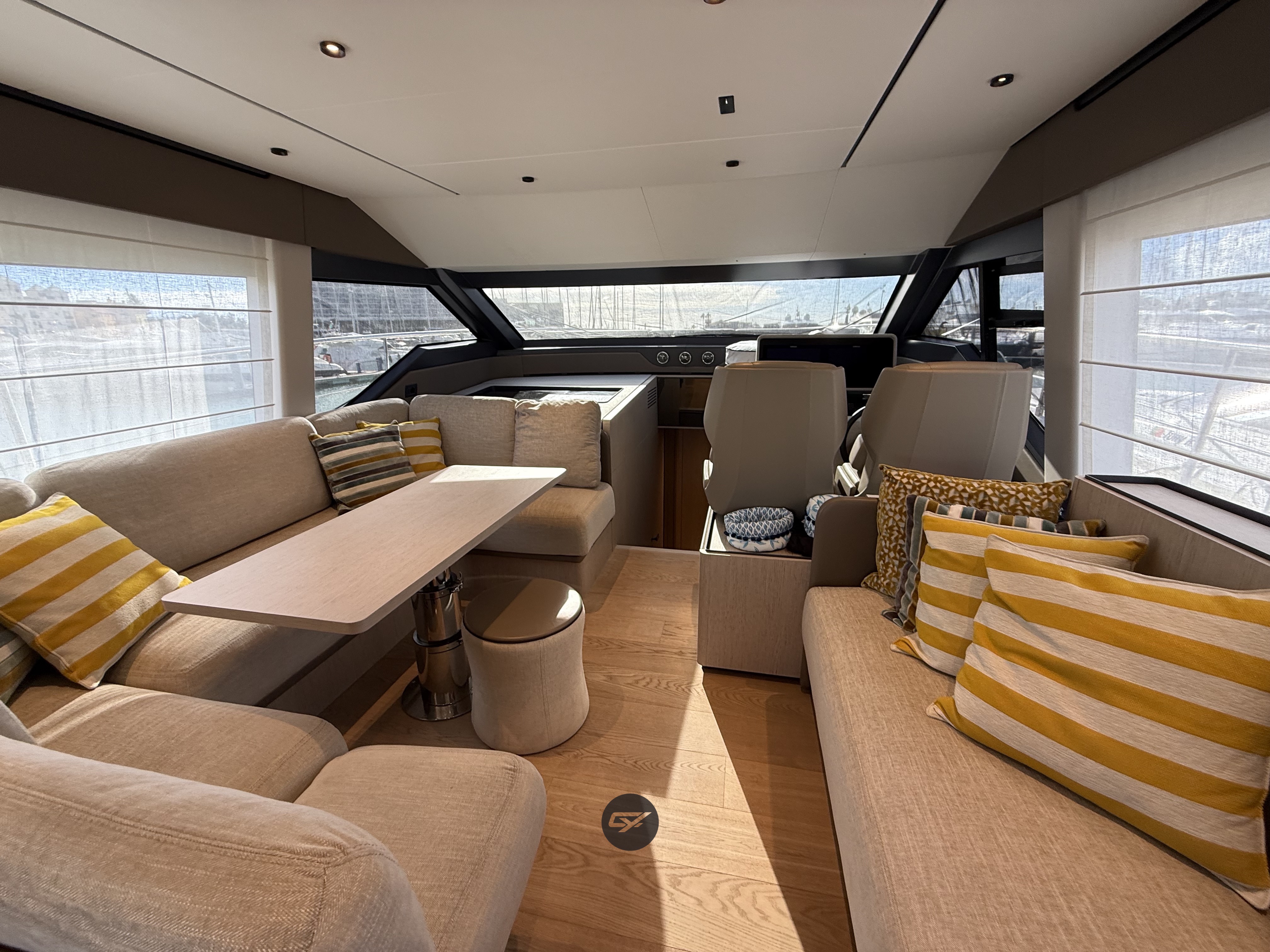 Inside, the Ferretti Yachts 580 offers a bright and refined atmosphere, with high quality finishes and a layout designed to maximise comfort during extended cruising. She features three cabins, including a full beam master cabin, ensuring privacy and well being for owners and guests.