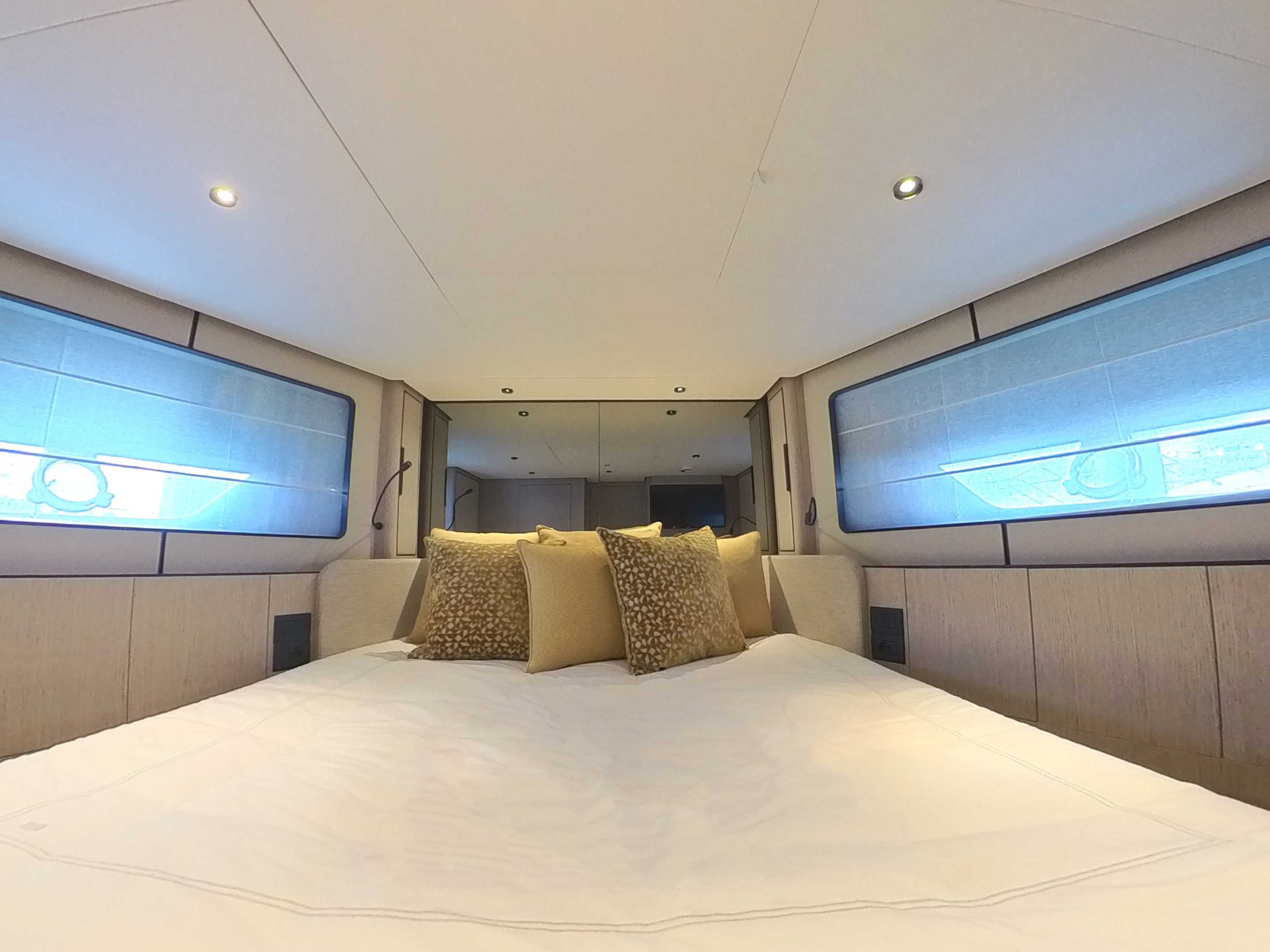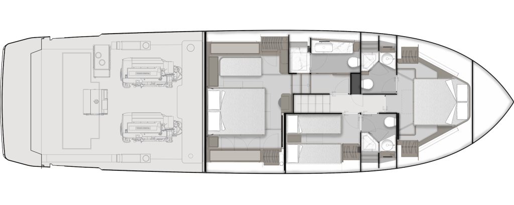 With an overall length of 18.24 metres and a beam of 5.00 metres, this model stands out for its excellent balance between generous interior volumes, well designed exterior areas and an extremely stable behaviour at sea.