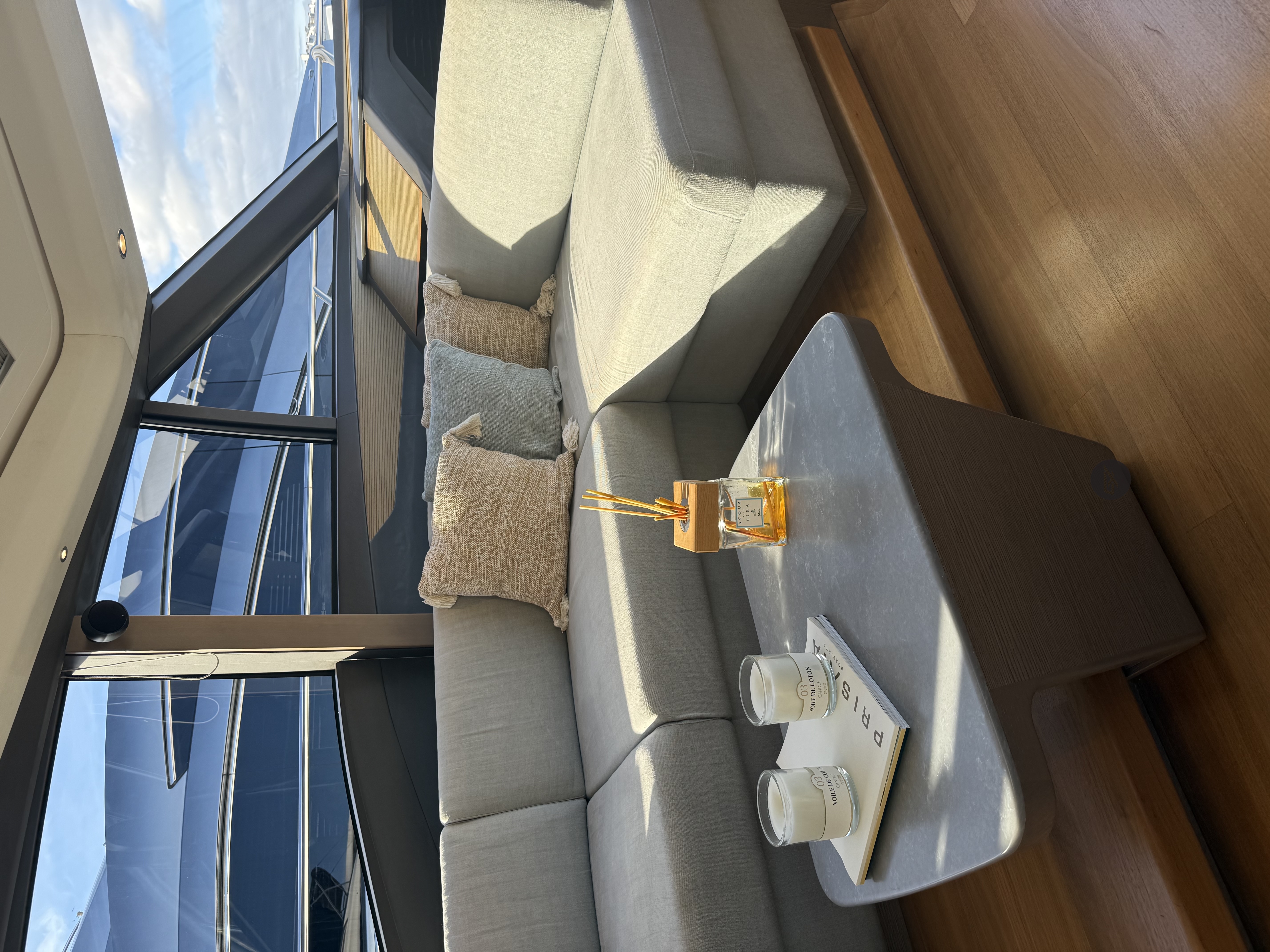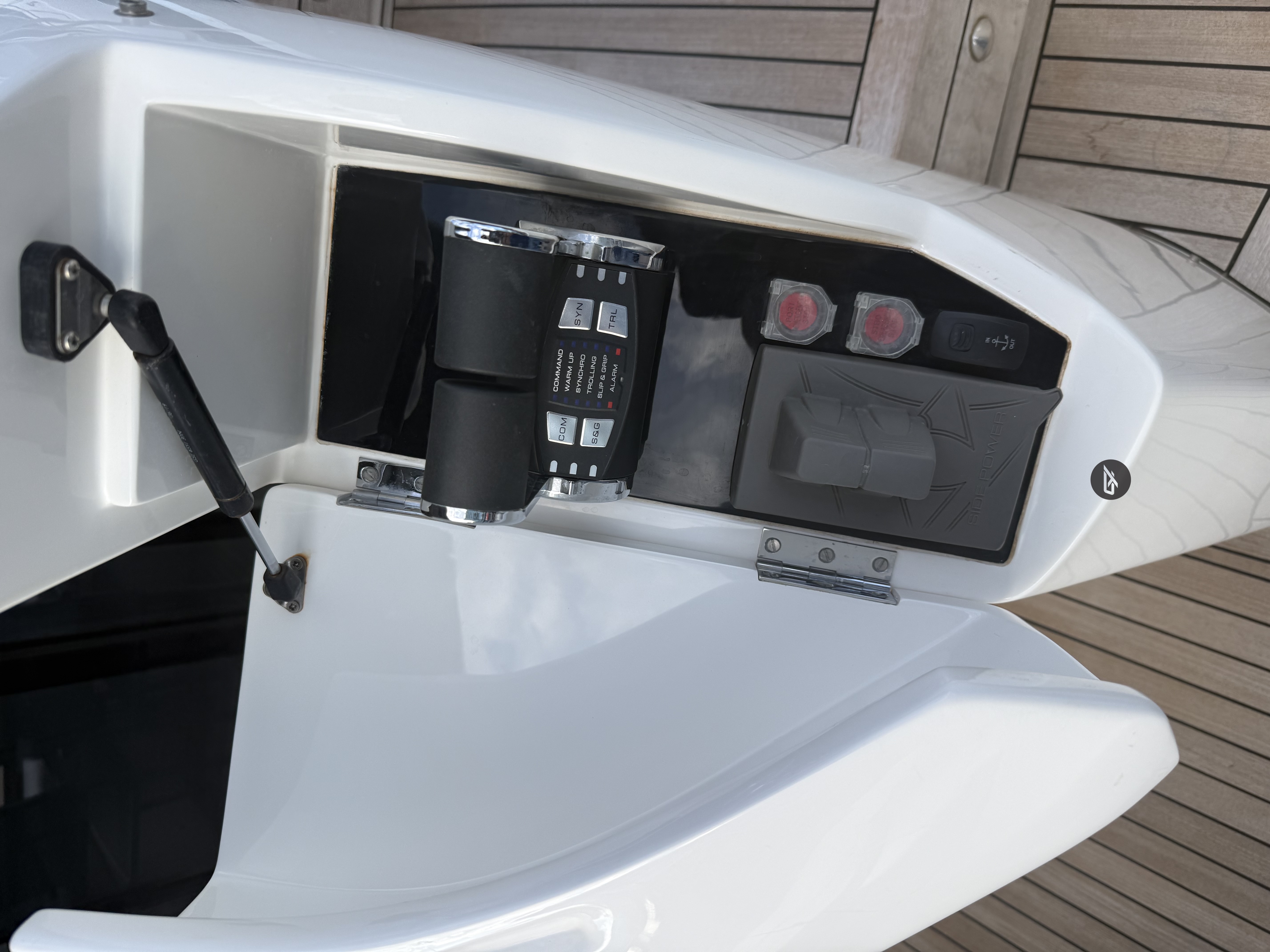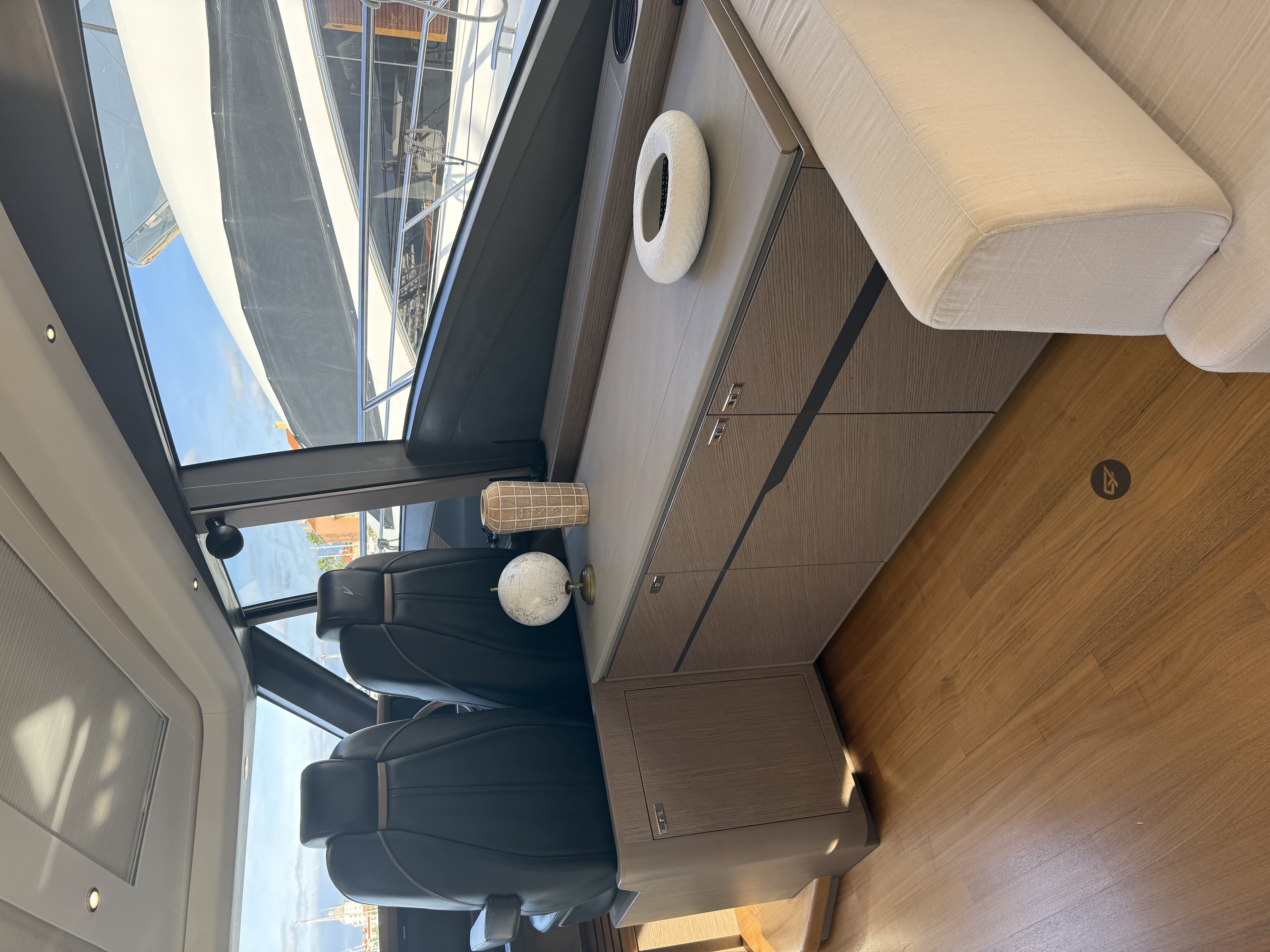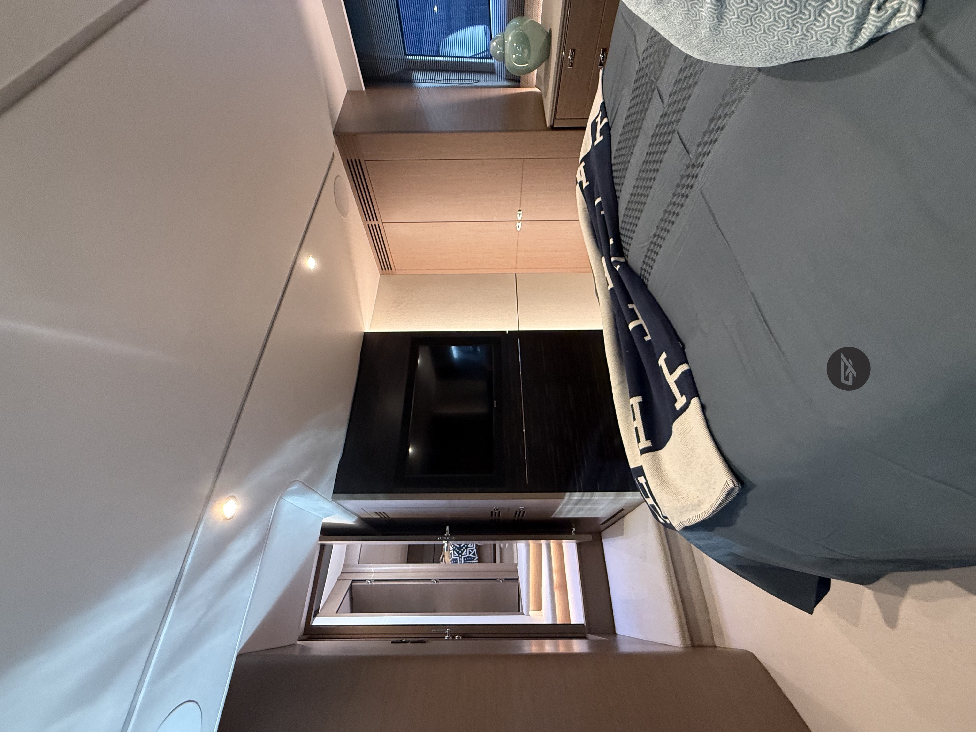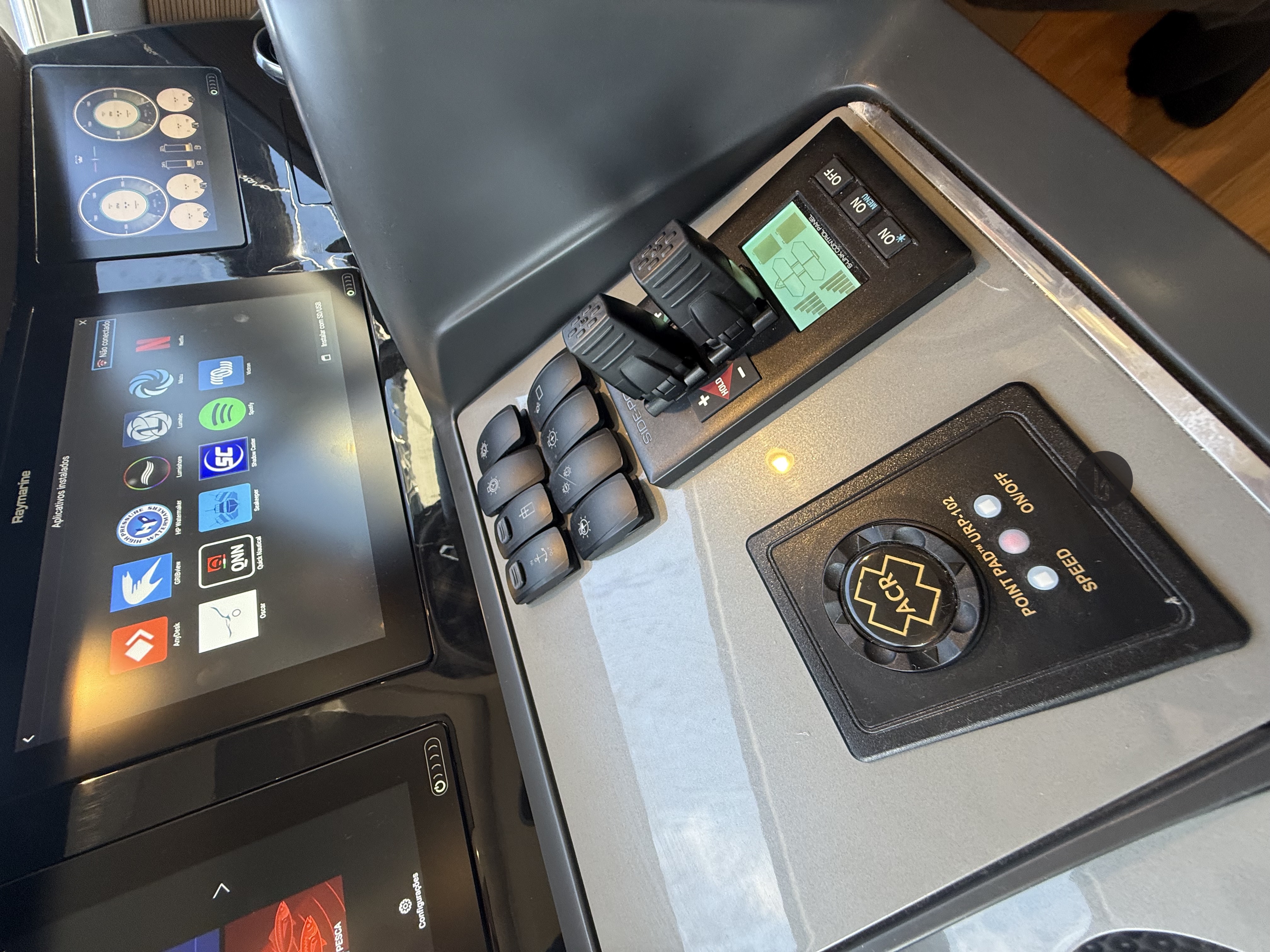 Well specified with Seakeeper NG9 gyroscopic stabiliser, upgraded Onan 17.5 kW generator, reverse-cycle air conditioning throughout and advanced Raymarine navigation including Axiom XL 16. Spacious cockpit with electric sun awning, barbecue, second helm station and hydraulic bathing platform.