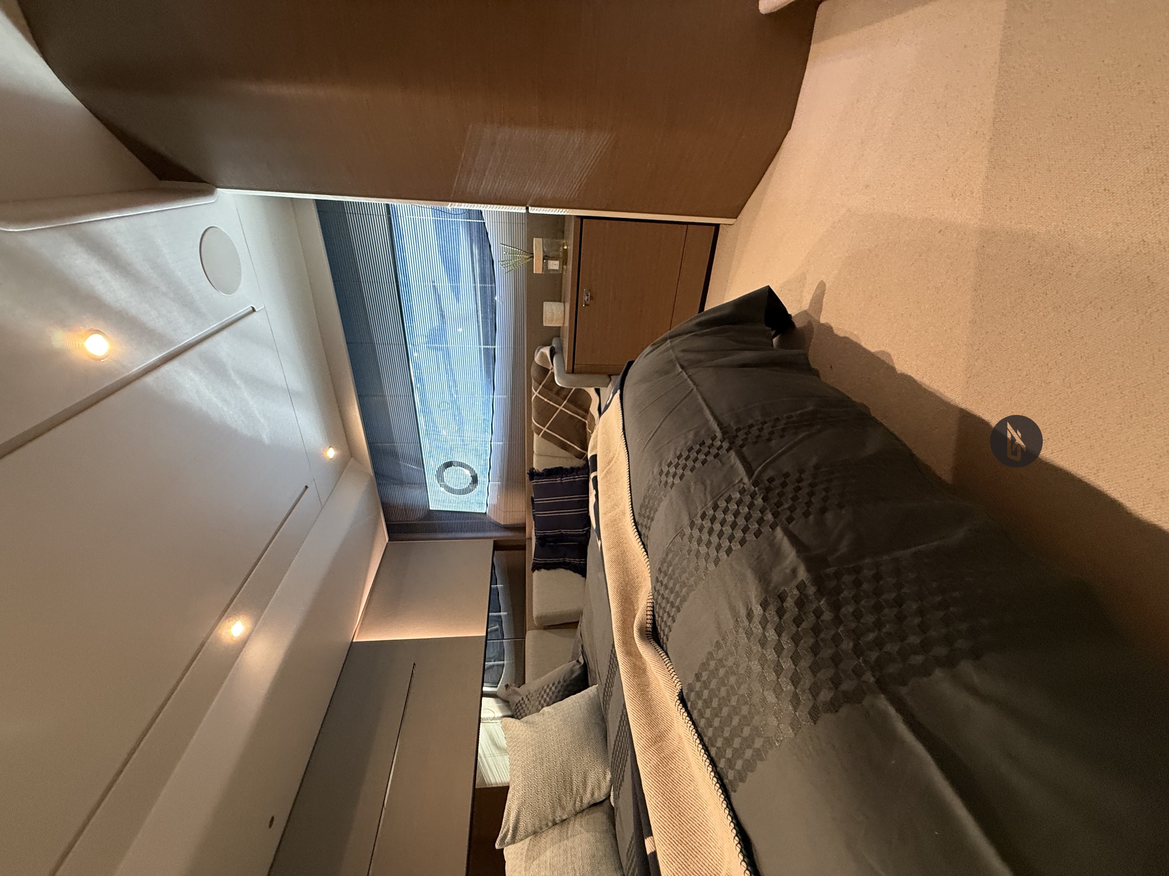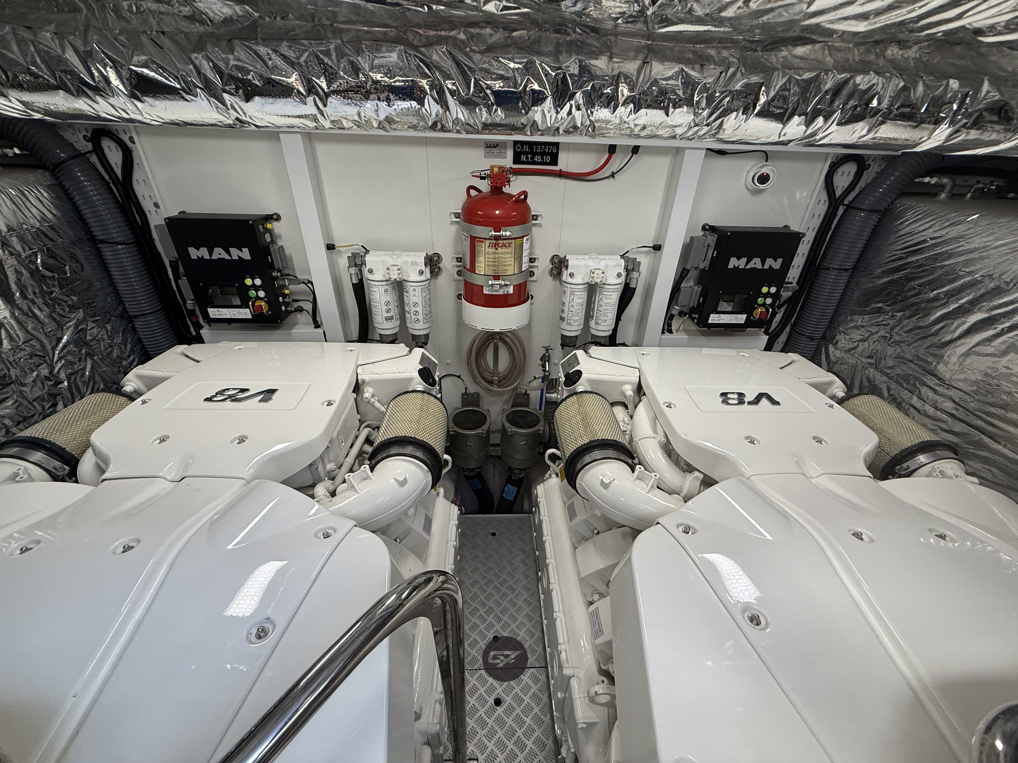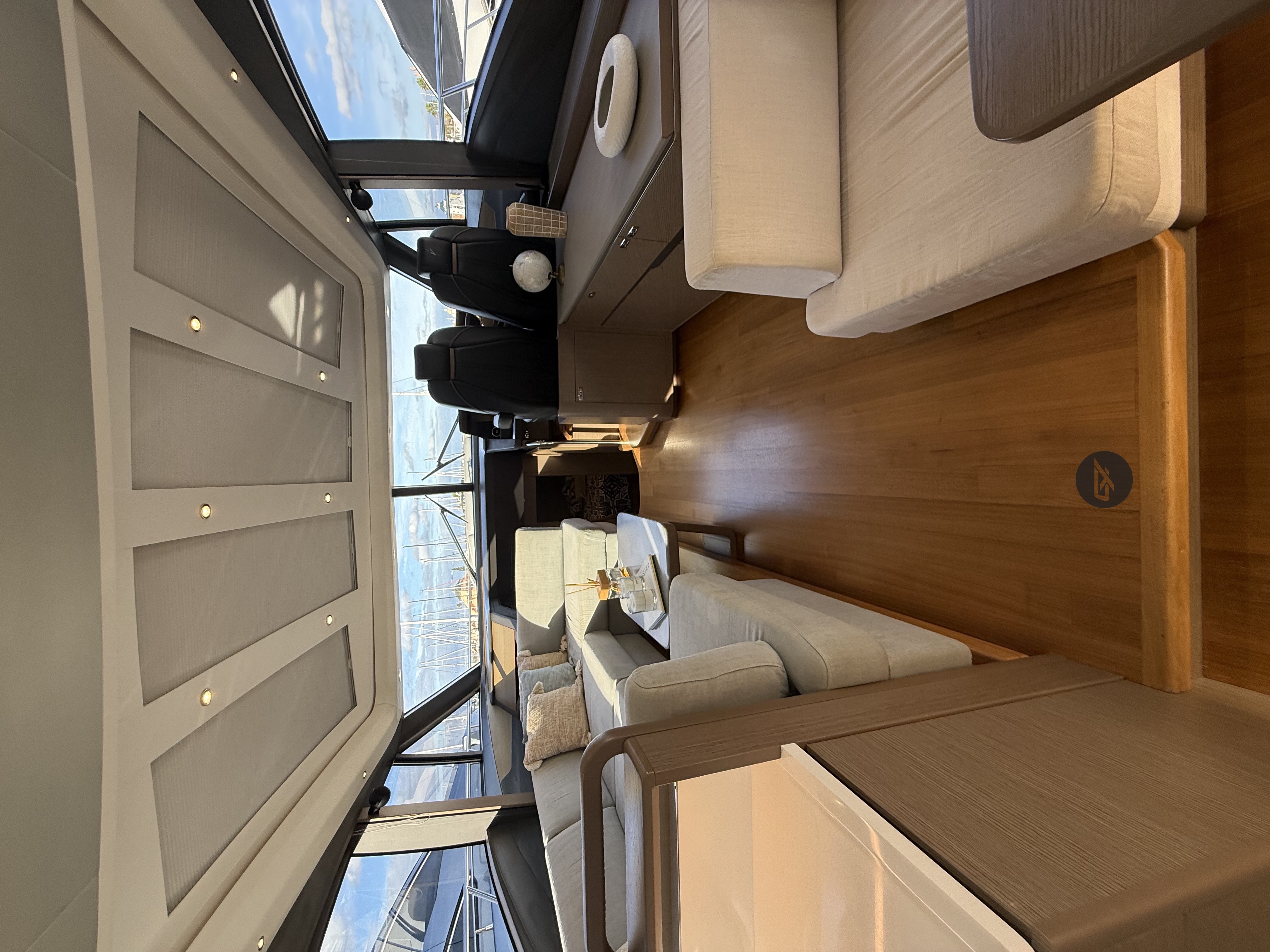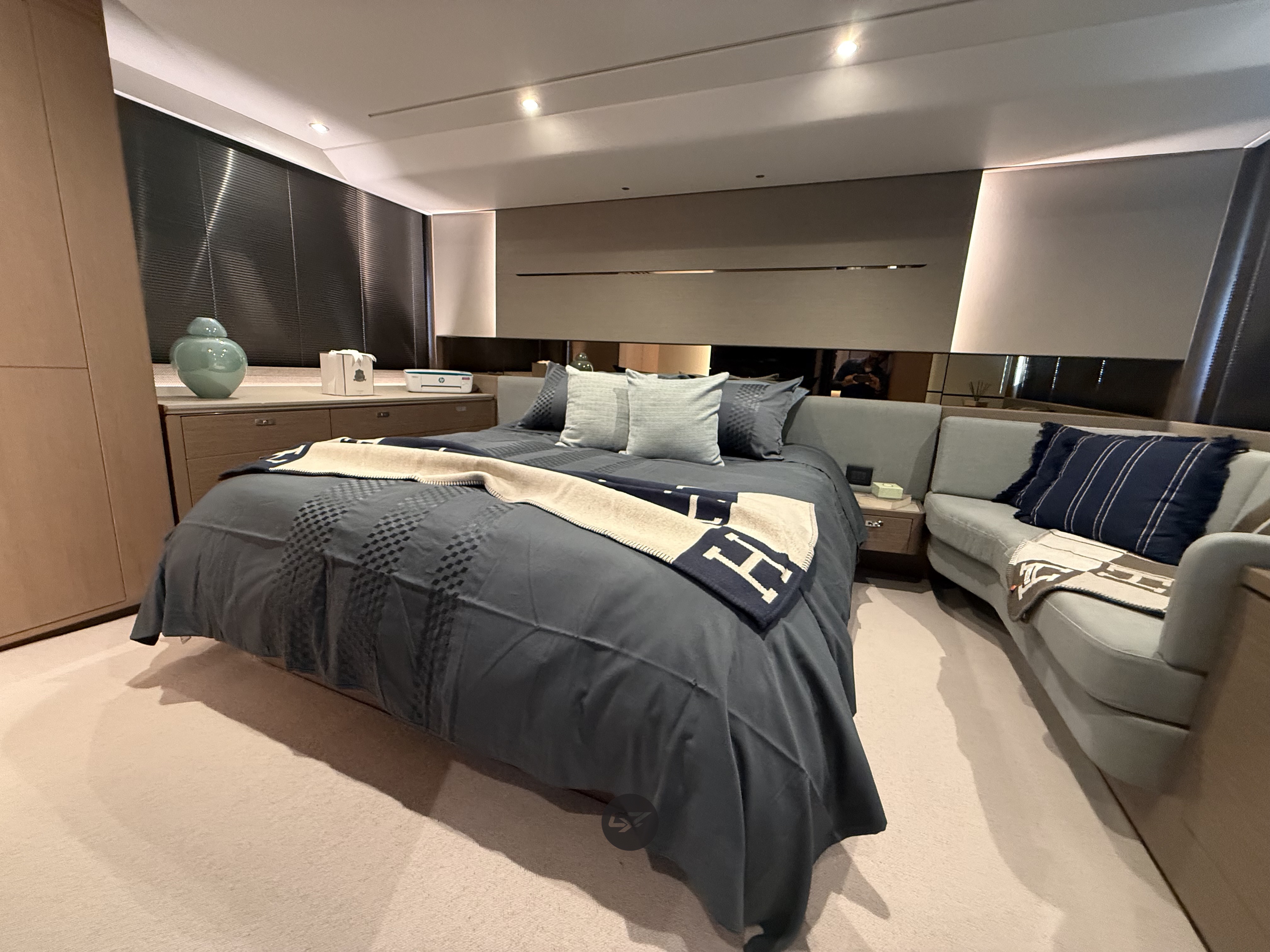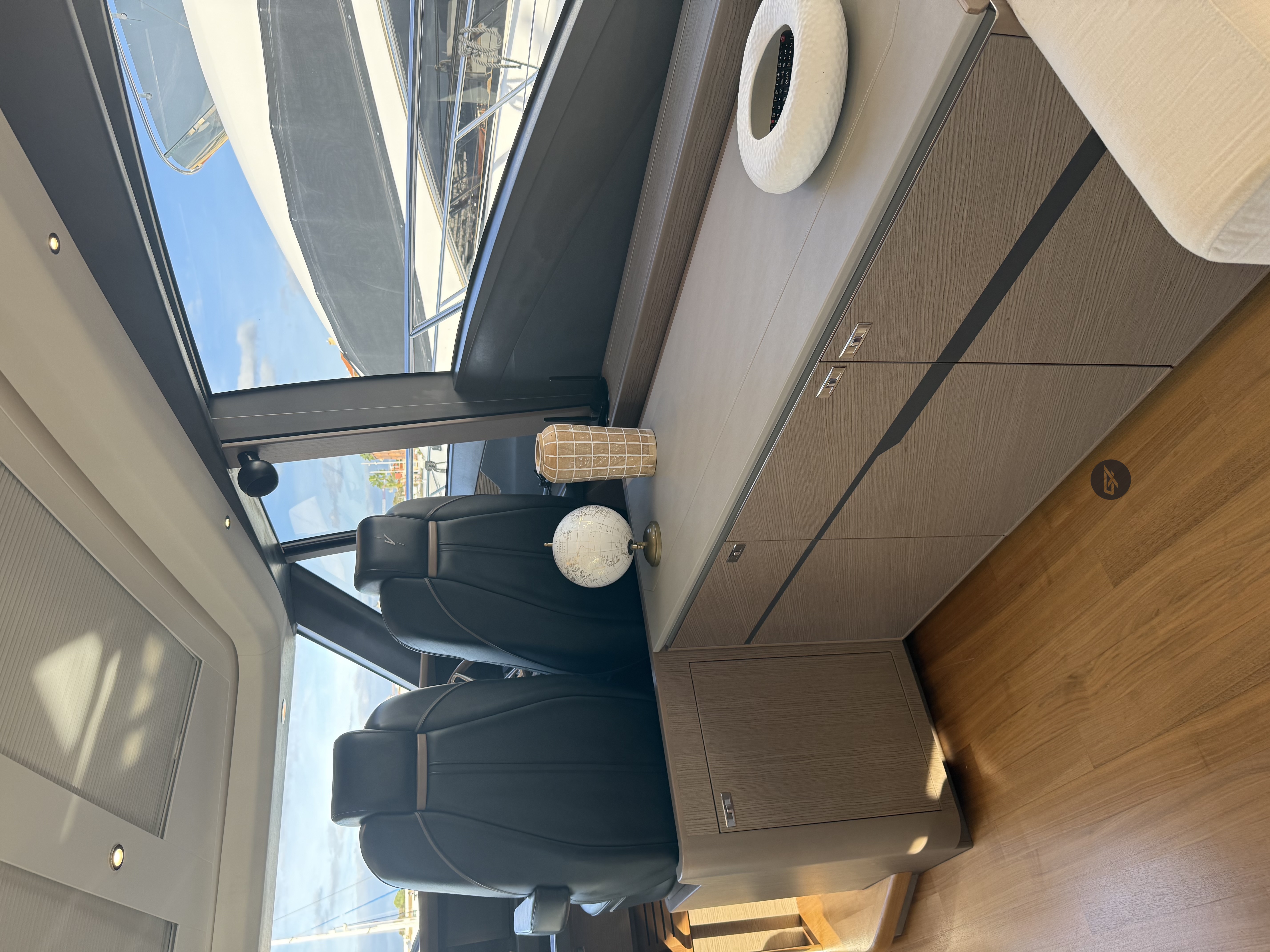 Well specified with Seakeeper NG9 gyroscopic stabiliser, upgraded Onan 17.5 kW generator, reverse-cycle air conditioning throughout and advanced Raymarine navigation including Axiom XL 16. Spacious cockpit with electric sun awning, barbecue, second helm station and hydraulic bathing platform.