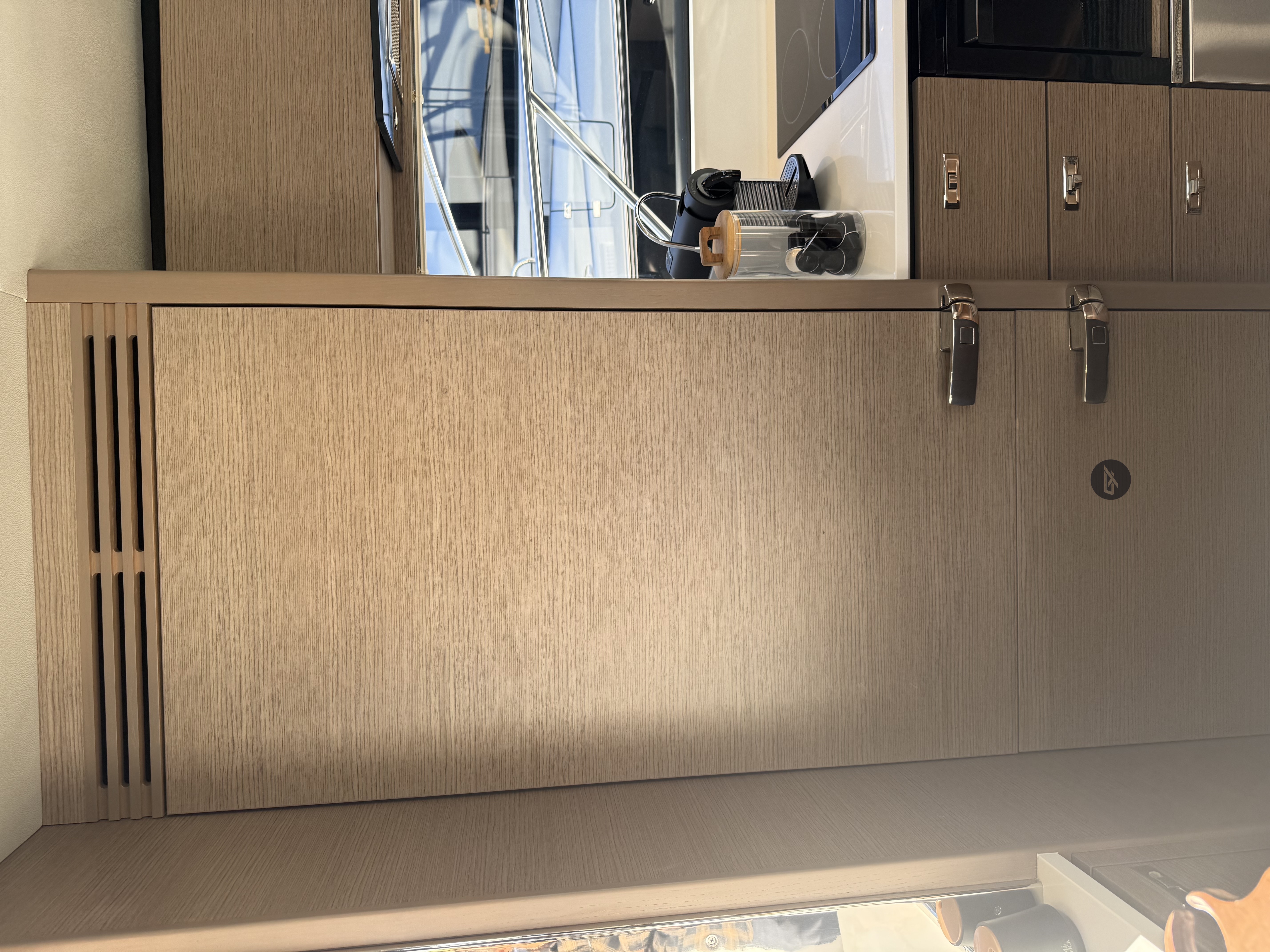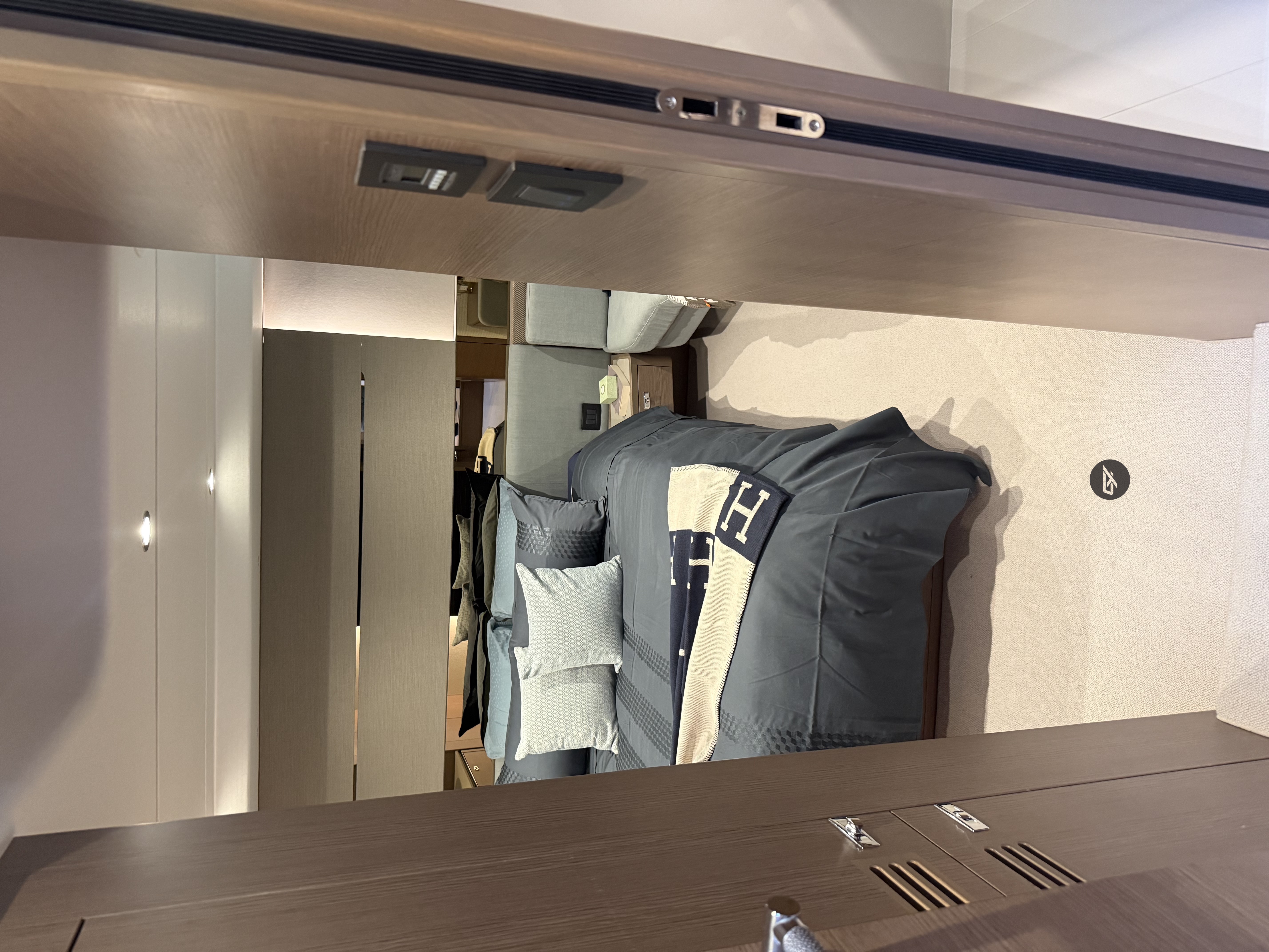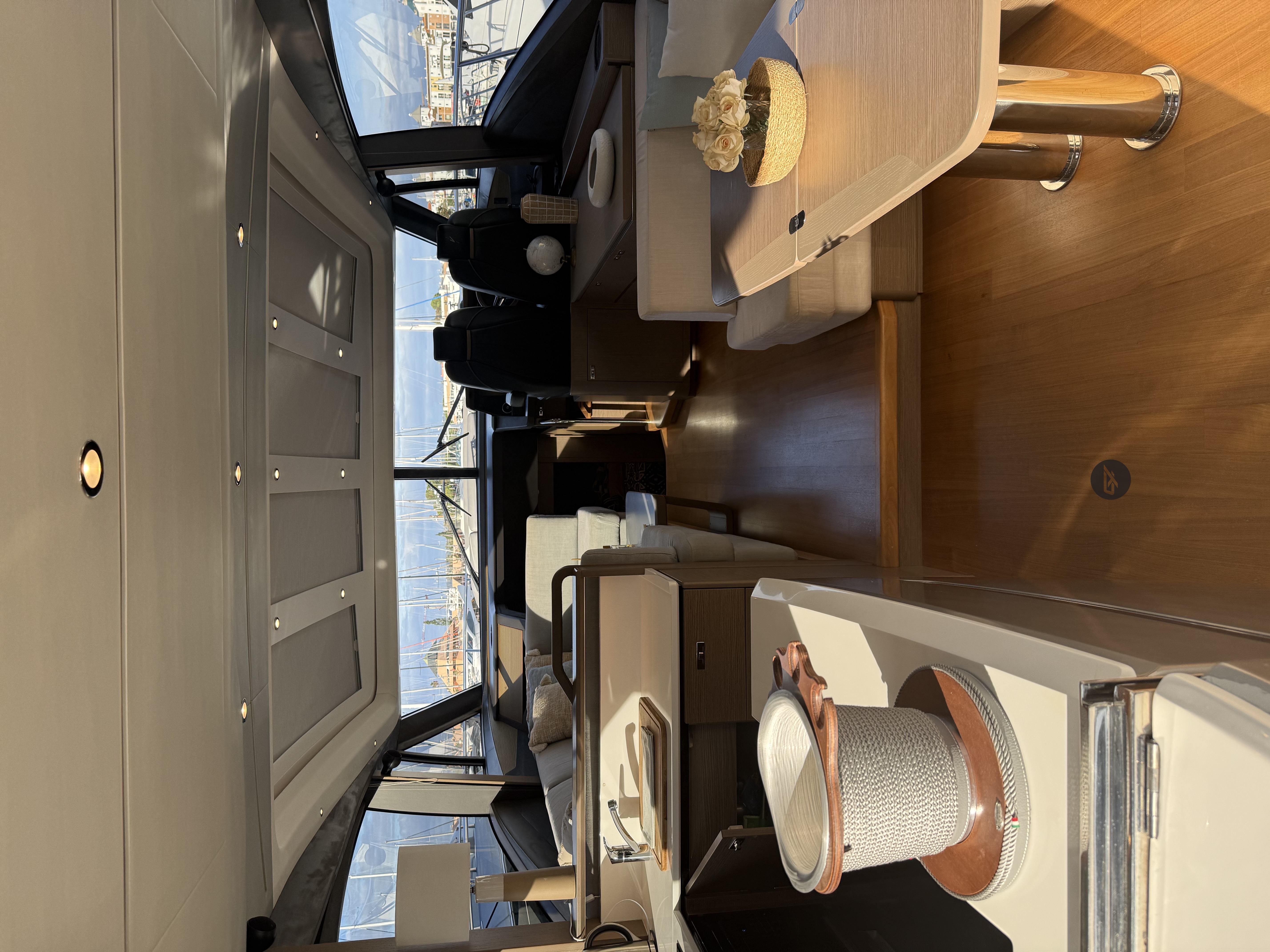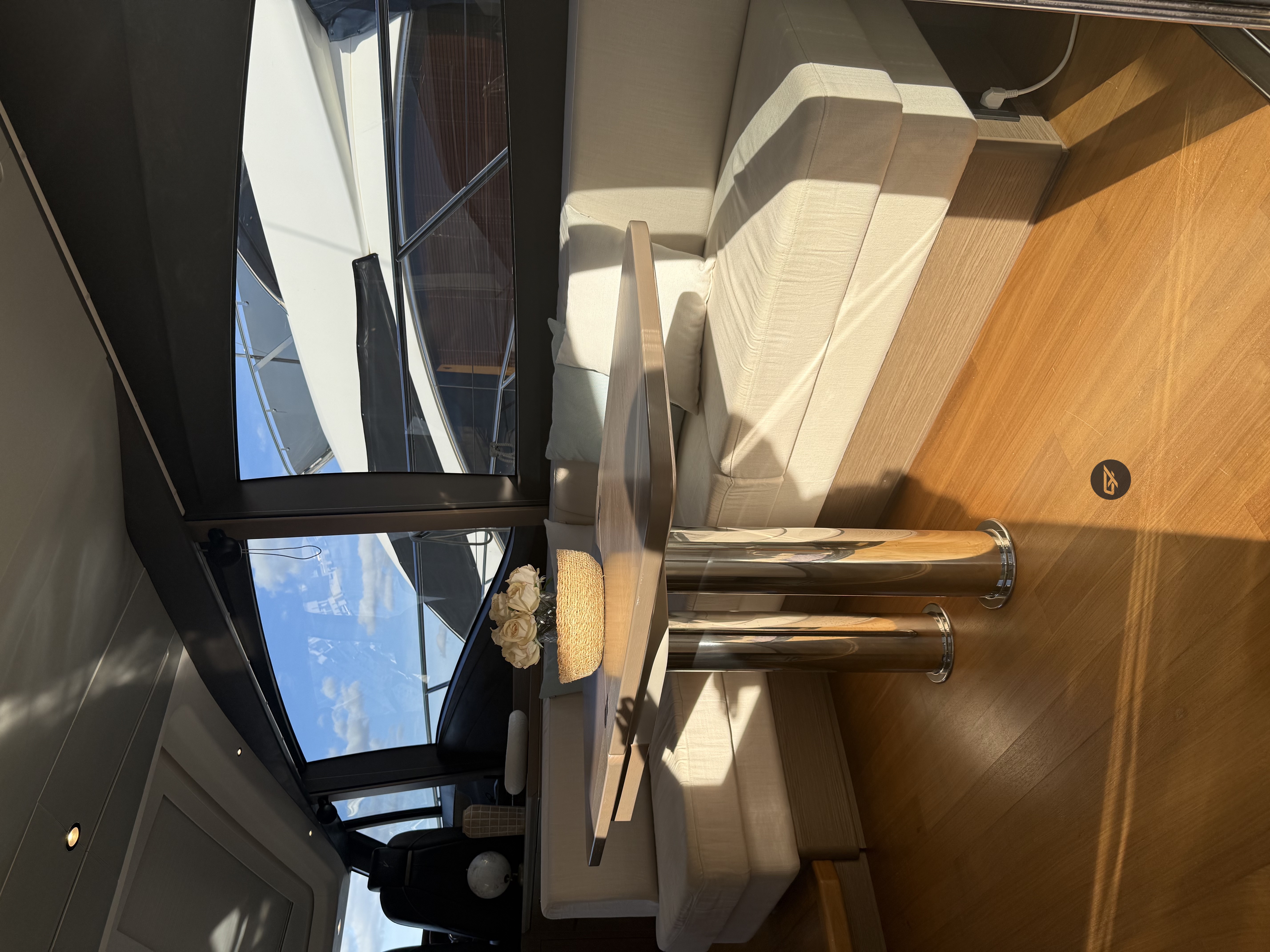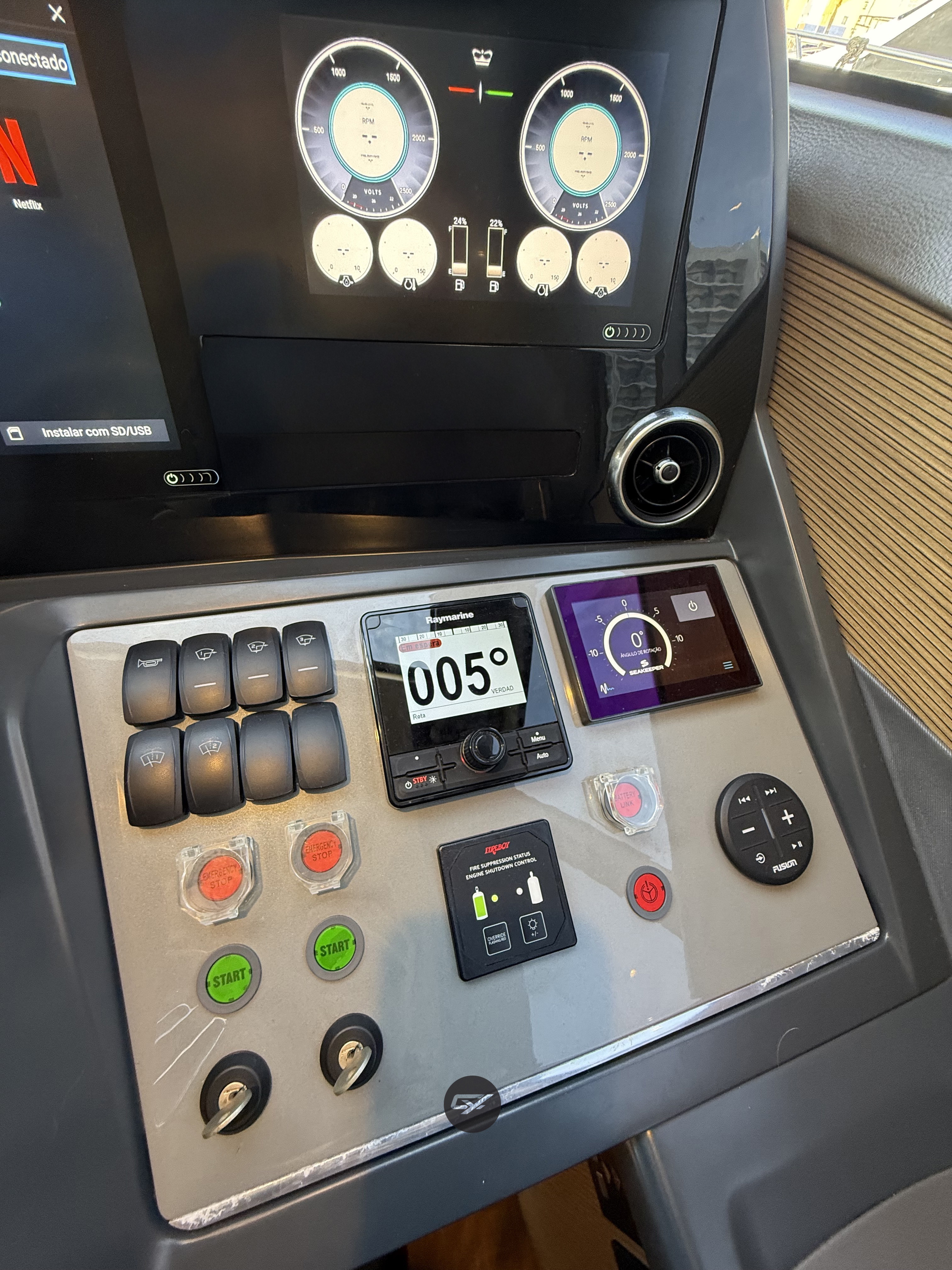 Well specified with Seakeeper NG9 gyroscopic stabiliser, upgraded Onan 17.5 kW generator, reverse-cycle air conditioning throughout and advanced Raymarine navigation including Axiom XL 16. Spacious cockpit with electric sun awning, barbecue, second helm station and hydraulic bathing platform.