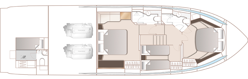 - Reverse cycle air conditioning throughout (saloon, cabins, crew cabin and bathrooms)