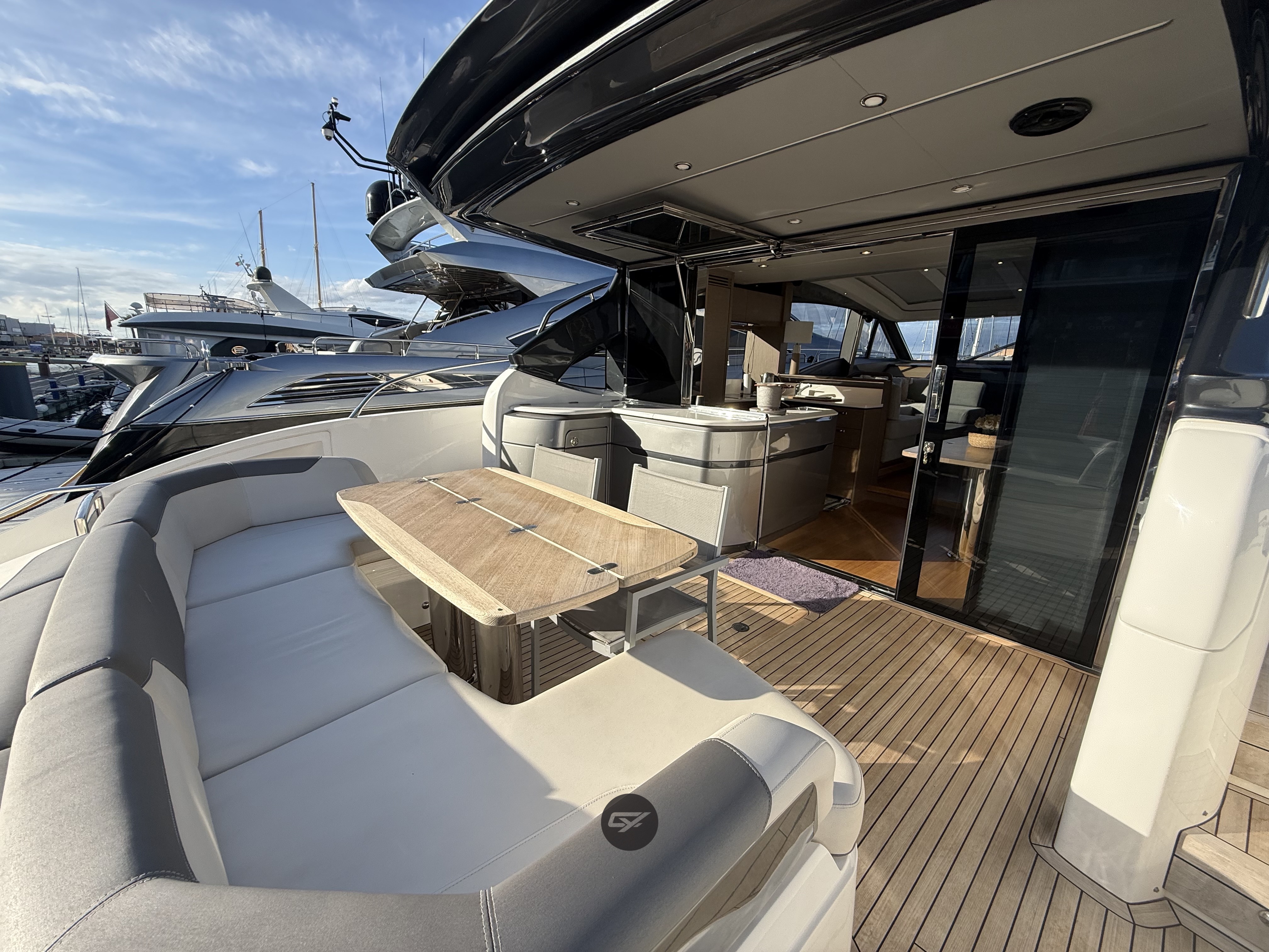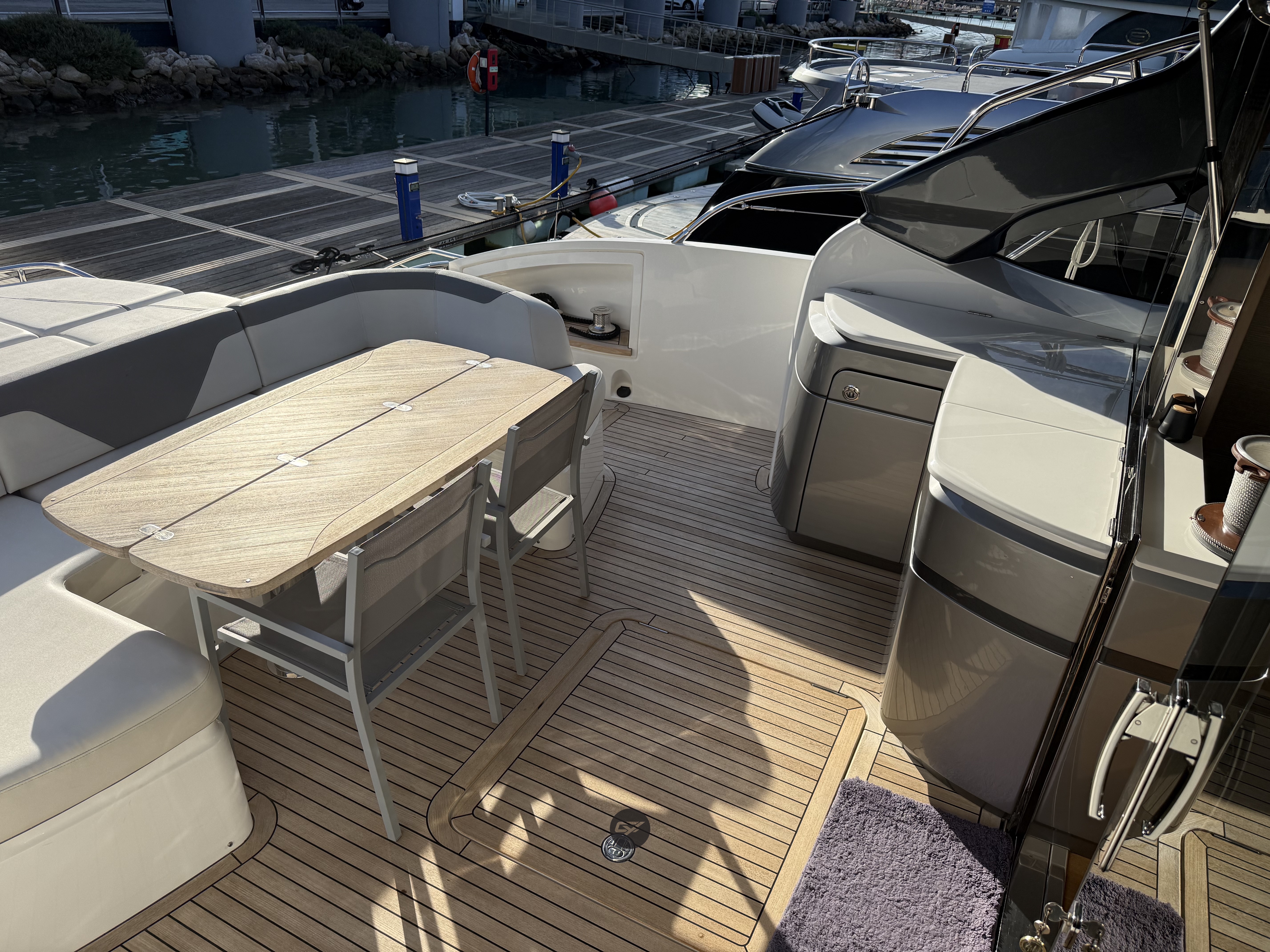 Immaculate Princess V60 from 2020, located in Vilamoura with VAT paid and ready for the season. Powered by twin MAN V8 1200 engines with only 555 hours, offering excellent performance and smooth handling.